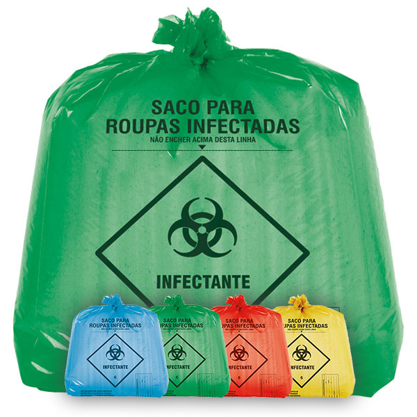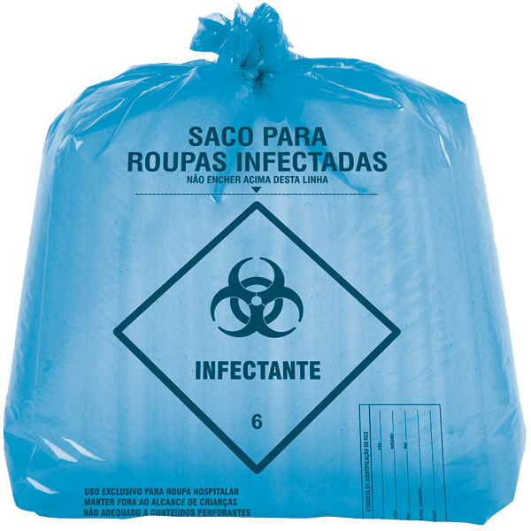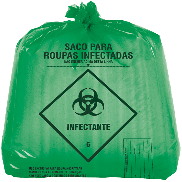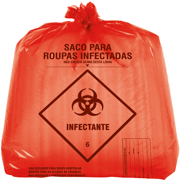 Informações: Sacos para transporte e acondicionamento de roupas hospitalares pós uso, material descartável com simbologia infectante normatizado com os padrões ABNT, possui fita para facilitar o fechamento.